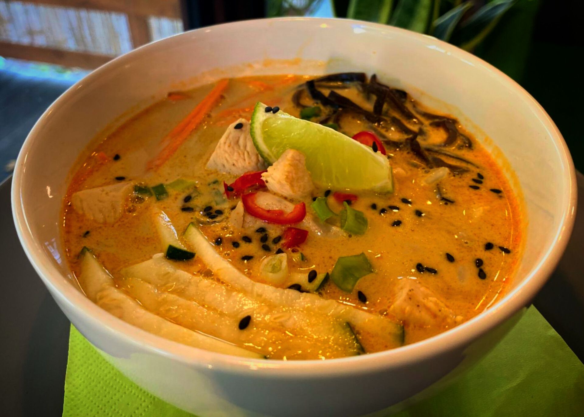 filet z kurczaka grillowany, kapusta pekińska, ogórek, pomidor, cebula, papryka czerwona, sos czosnkowy, sos buffalo -