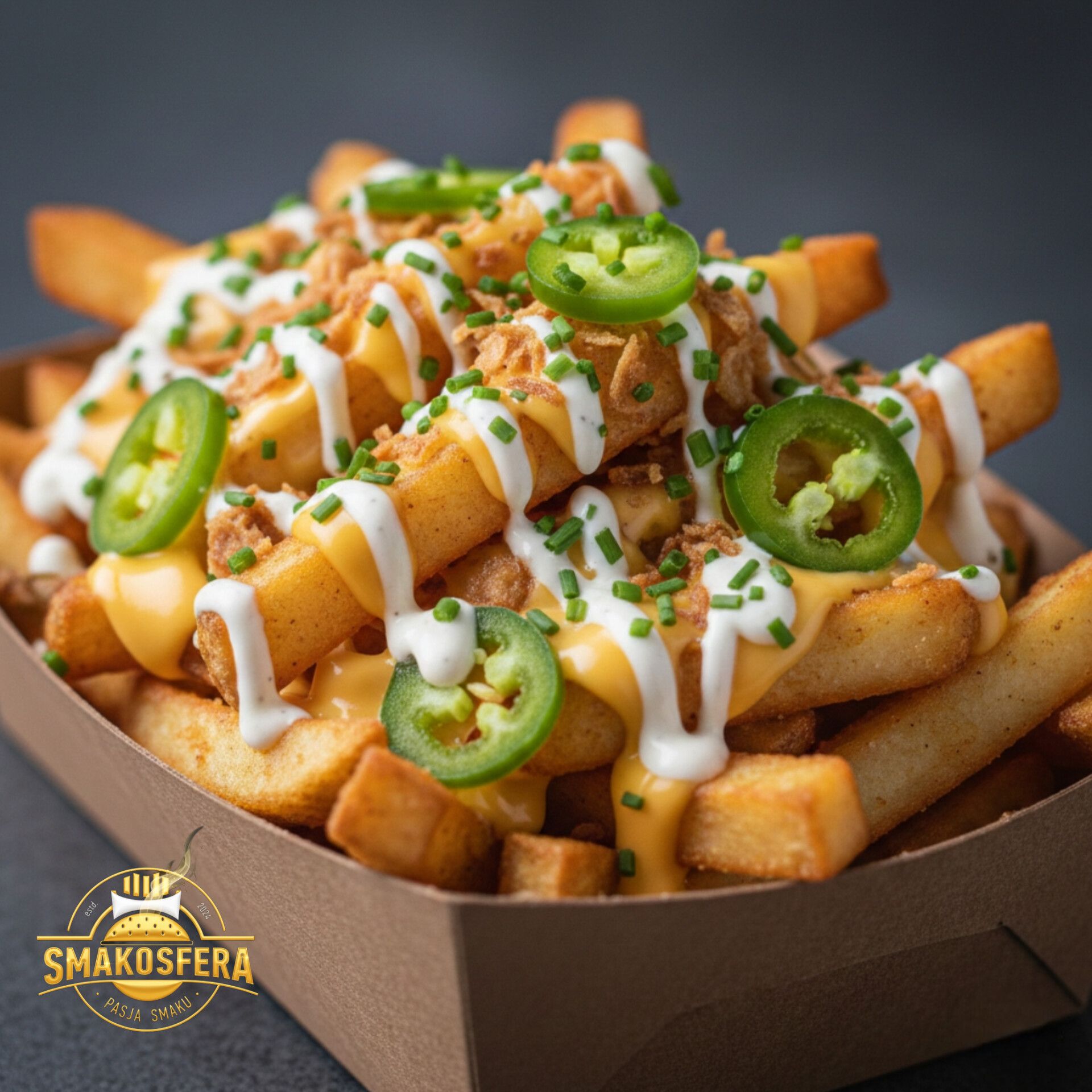 200g Frytek | sos serowy | boczek | jallapenio | cebula prażona | szczypiorek | polane sosem